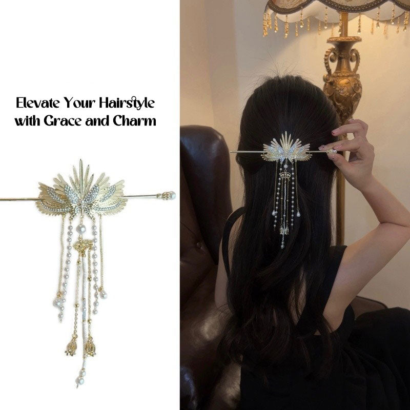 Inspired by classic design and adorned with delicate pearl tassels, this exquisite hair accessory is perfect for those who seek a touch of old-world glamour in their modern style.